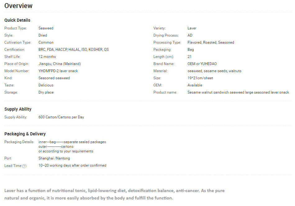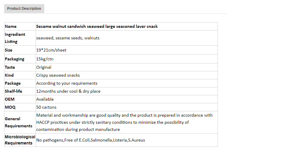 Sesame walnut sandwich seaweed large seasoned laver snack